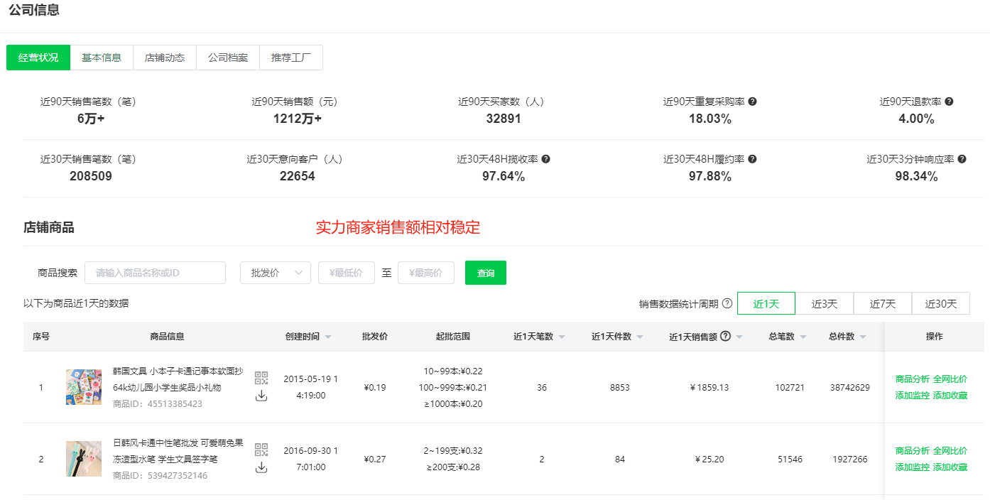 这些3类商家在1688平台上享有更高的信誉度和知名度。平台对这些商家有严格的审核和认证机制,确保其具备相应的实力和信誉。因此,在选品时可以优先选择这3类供应商,相对可以降低采购风险,增加合作的可靠性。再者,这3类商家在平台上的曝光率更高,有更多的机会被潜在客户发现。